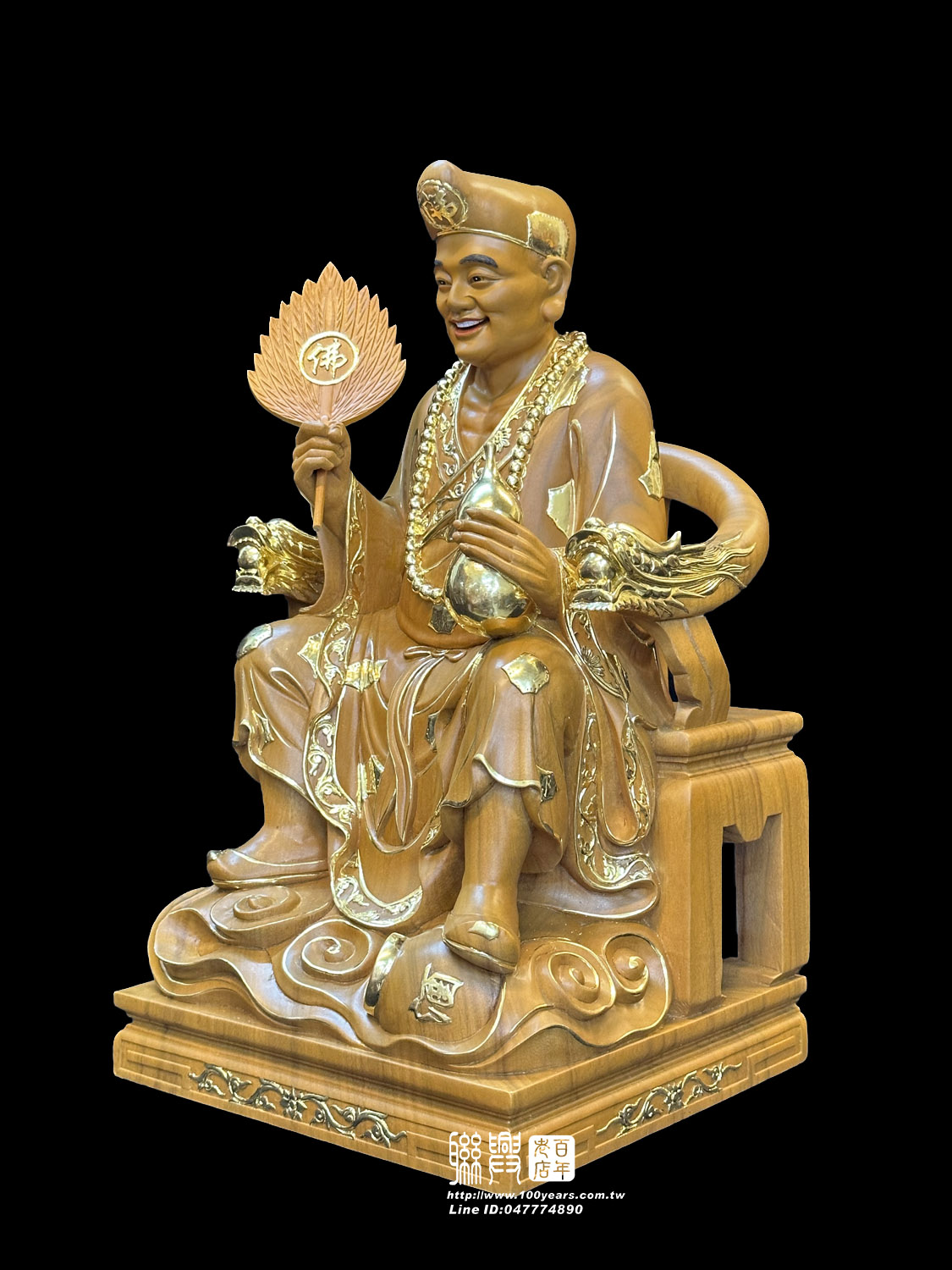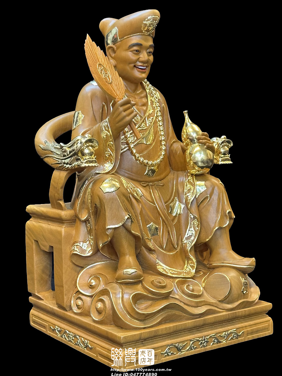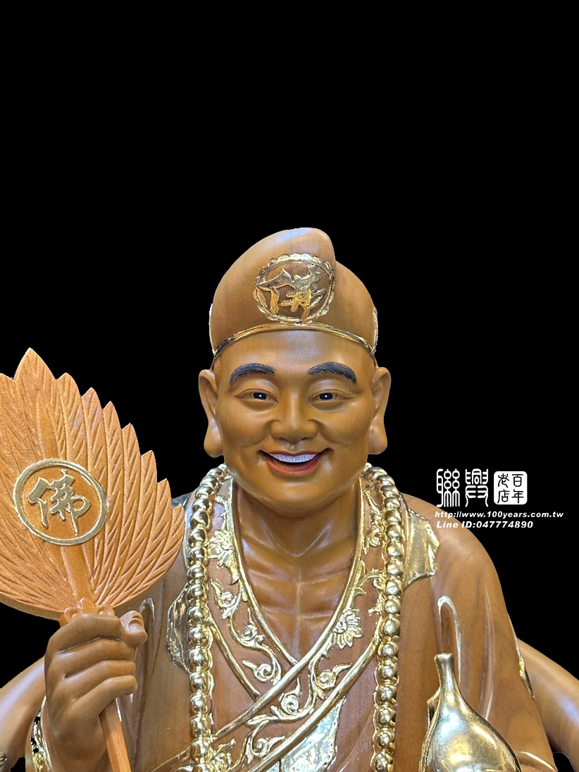 客製尺六樟木描金濟公坐龍椅